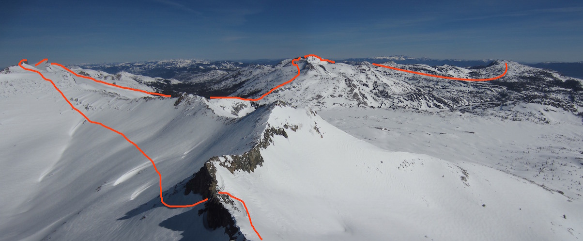 March 29, 2016 1204 × 497 Desolation Traverse- Skiing the Crystal Range and more… View of the route from Pyramid Peak, looking north